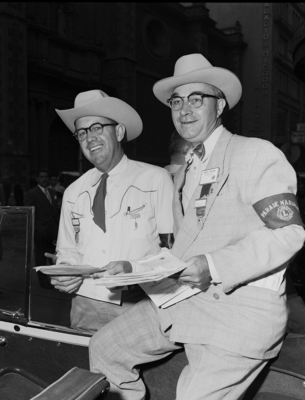 Texas and International parade marshals at the Lions International parade in Mexico City were Cleat Cockrell, left, and Charles F. Williams, both memebers of the South Side Fort Worth Lions Club.