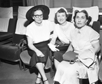 Three members of the Fort Worth Zonta Club are shown after they boarded the train for Houston, where they are attending the convention of Zonta International. They are, left to right, Mmes. Roy Martin, I. F. Holzmeister, and John Tarter.