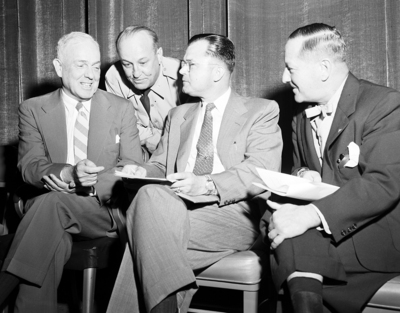 Col. Williams S. McDuffee, Southern Air procurement District commander here, talks with three of the speakers at the small business liaison officers conference at the Ridglea Theater Friday. They are, left to right, J. Kennard Weddell, John E. Horne, and William H. Hine.