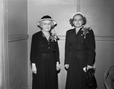 Mrs. O. V. Colvin, left, 1302 W. Presidio, was presented with a life membership in the First Presbyterian Church Woman's Council and Mrs. Caldwell Paylor, 3245 Cockrell, was made an associate in the national board of Christian education of the Presbyterian Church at a luncheon meeting of the auxiliary. Both are former presidents of the group. Published in Fort Worth Star-Telegram evening edition March 30, 1950.