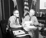 Reporting for duty Tuesday as deputy commander of the Fort Worth Quartermaster Depot was Col. Edwin B. Kearns Jr., left, who is being shown some official correspondence by Col. Edwin D. McCoy, commander, whom Kearns will replace later this month. McCoy is being assigned to the Far East Command.