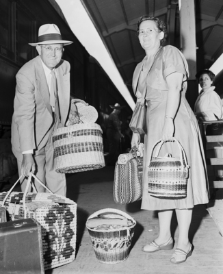 Mr. and Mrs. Troy Montgomery of Fort Worth came home from the Lions International Convention in Mexico City loaded with souvenirs. Montgomery is a member of the Fort Worth downtown club. They arrived here on a Texas Lions special Tuesday morning.