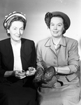 Misses Imogene, left, and Maurine Eickhoff, display a pair of reindeer embroidered sealskin moccasins they bought in Sitka when they were on a recent trip to Alaska.