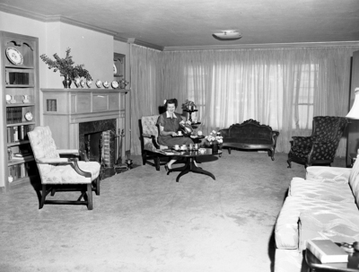 China Collection: Mrs. R. L. McCann in the living room of her home at 4129 Ranier Connecticut.