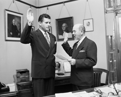 To support and defend - Snowden M. Leftwich Jr., left, promised to support and defend the U. S. Constitution when he took the oath of office Tuesday as assistant U. S. attorney. The oath was administered by U. S. Attorney Frank B. Potter.