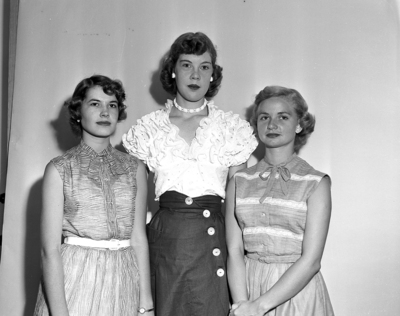 Misses Joan Gudith, Jo Ann Gathings and Marilyn Madden, left to right, classmates at Arlington Heights High School, recently returned from a vacation trip to the Texas coast and Corpus Christi. They were accompanied by Mrs. G. V. Gudith.
