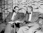 Take It Easy - Major General Charles I. Carpenter, left, chief of Air Force Chaplains, relaxes as he talks with C. F. McClure, president of Convair Management Club, Friday night. Chaplain Carpenter will be principal speaker at the club's meeting Saturday night here.