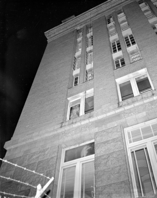 Escape Route - three African American convicts left Tarrant County jail by the rope route. The men, Labeled "desperate and dangerous" slid down ropes pictured here.