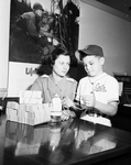 For Cat Fans - Mrs. Fred Crusemann shows Bobby Bragan Jr. Part of the blood donor equipment at the North Texas National Defense Blood Center. The boy, son of Bobby Bragan, manager of the Fort Worth baseball club, delivered 500 reserve tickets to the center Thursday. The tickets will go free to all blood donors between July 22 and August 1.