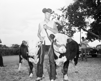 Breeding Stock - Harvey Clinton of Young County holds two Hereford calves, which he will use in building a purebred herd.