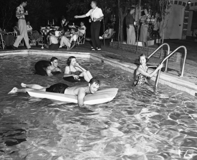 Splash Time. "Huck" Newberry, Sumter Bibb, Kitty McDonald and Gail Potts.