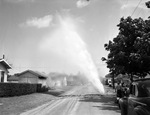 Eight-inch water main bursts and destroys pavement on Ayers Street between Avenue I and Avenue J causing a waterspout, Fort Worth, Texas.
