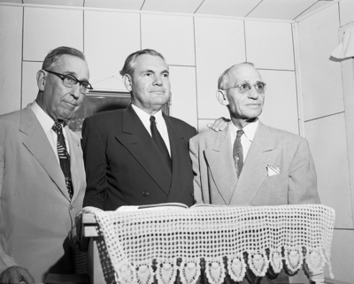 At Methodist Ceremony - Participating in the dedication of a new education building at Silver Creek Methodist Church Sunday night were, left to right, Dr. Roy A. Langston, superintendent of the Weatherford district, Bishop William C. Martin of Dallas and Reveron Otis Irby, pastor.