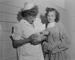 Liutenant. Lillian Zicler feeding Charles William Tefft Jr,. while his mother Mrs. C. W. Tefft watches.