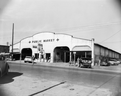 Part of the Weatherford buildings which play an important part in the daily life of the city's residents, is the public market. The market is operated by the city, where farmers rent stalls and sell produce. Published in Fort Worth Star-Telegram morning edition December 6, 1953.