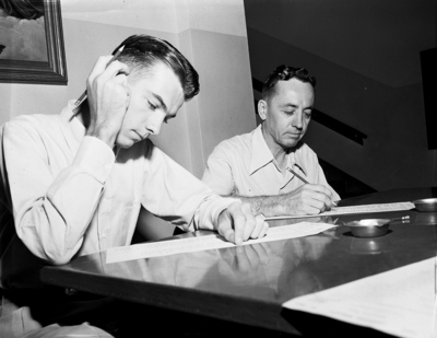 Casting his first ballot Saturday at Morningside Elementary School in Precinct 89 was Eugene Nelson, left, of 2716 Stuart Drive, alongside his father, R. L. Nelson of the same address.