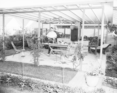 Fort Worth. City of. Residences Mr. and Mrs. Orville Tunstill in their patio.