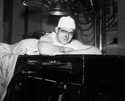 Collision of a train and an ambulance before dawn near Fort Worth resulted in death for a North Side man riding in the ambulance, but the driver J. O. (Jack) Shannon Junior, 21, escaped with a scalp wound and bruises. Shannon is shown at St. Joseph's Hospital.