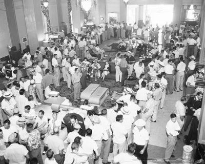 Texas High School Coaches Association. Texas high school coaches jam the lobby of Hotel Texas as they line up to register.