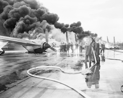 Carswell Air Force Base. B-36 Carswell firefighters use modern methods in fighting fire on B-36.