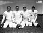 High School All-Star football players Blakeley, Dodd, Robbins and Liston are in a kneeling pose on the field.