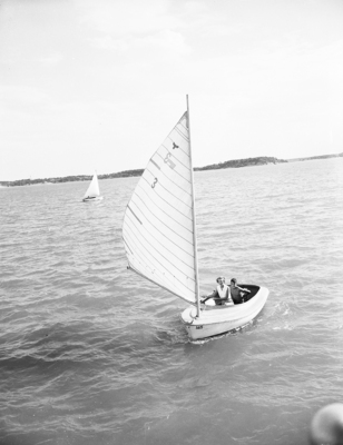 Society series on boating at Eagle Mt. Lake. Sailing, Sailing. Amelia Ann Kerby and Gary Boswell.