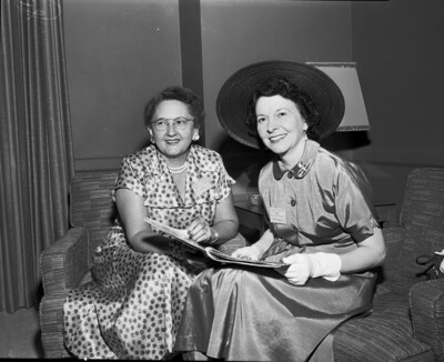 Mrs. Louis Collier, left, and Mrs. H. C. (Pat) Patteson of San Antonio seated and looking over a magazine.