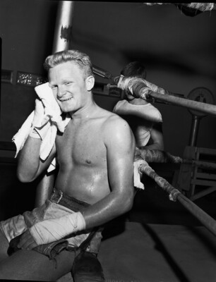 Middleweight John McCord dries off after workout for the Texas Amateur Athletic Federation (TAAF) boxing tournament here Thursday and Friday. He's a former Fort Worth regional Golden Gloves champion.