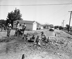 Fort Worth neighborhood children playing in a water hole on 23rd Street between Harding Street and Nitchols Street. Holes were made by Water Department engineering crew.