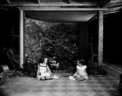 Two little girls, nieces of the Ren Clarks, find the Bamboo Room a delightful place to spend summer days. Sherry Jaynes, left, daughter of J. B. Jaynes Jr. of 305 Crestwood, and the dughter of Dr. and Mrs. Betty Ruth Jaynes of 3407 West 7th with the Clarks.