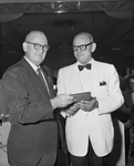 Eric Williams, left, president of the Drug Traveler's Association, presented Jack Collier an award Wednesday night as Collier was named the association's "King of Courtesy" for the last year.