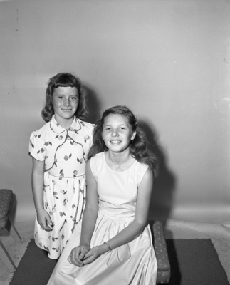 A child in need in Fort Worth will receive a quart of milk every day for almost a month through the efforts of Judy Beasley, left, daughter of Mr. and Mrs. Jack Beasley of 844 Northwood, and Betty Jo Moore, daughter of Mr. and Mrs. A. J. Moore of 845 Northwood. The two girls said they had helpers in accumulation $6 for the fund. They were Larry Hutchinson and Jimmy Donald Smith, two small boys who live in their neighborhood.
