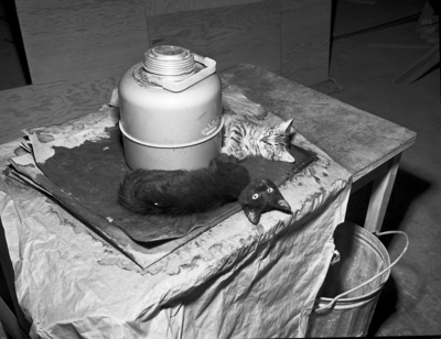 Two kittens owned by O. G. Timblin curled around a jug of ice water.