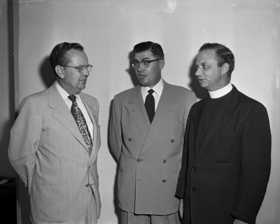 Volunteer Chaplains - Currently serving as chaplains at the United States Public Health Service Hospital are, left to right, Rev. H. O. Bennett, former pastor of the Handley Presbyterian Church; Rabbi Isadore Garsek of Congregation Ahavath Sholom, and Rev. Thomas Collins, pastor of Our Mother of Mercy Catholic Church.