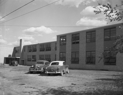 Exterior shot of Dunbar Elementary-Junior High School for African American students, located on Leach Street, Luftkin, Texas.