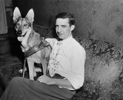 Robert E. Lee and "Esther" his seeing-eye dog.
