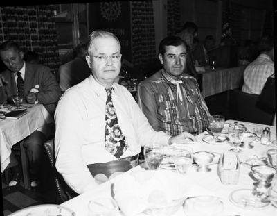 Guests of the Western Rotary Club of Fort Worth at a Western Hills luncheon Tuesday were C. E. Leatherwood, left, president of Dublin Rodeo Enterprises, and Ray Whitley, western movie star who will be among entertainers at the rodeo starting Wednesday.