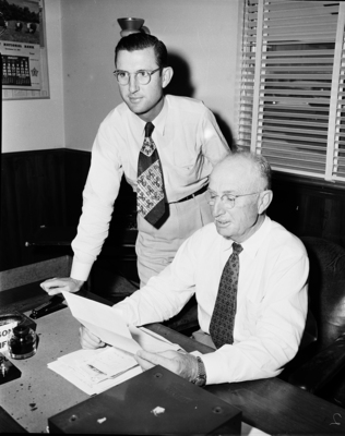 Joe Box and D. E. Box, officers of the First National Bank of Grapevine.