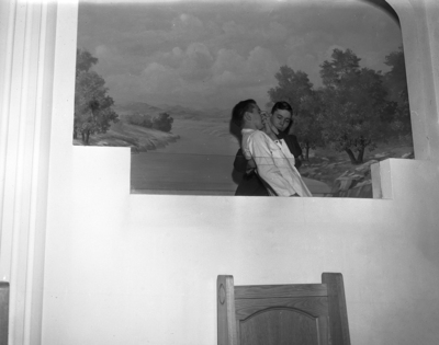 Church of Christ Minister Walter Moore of West supports Billie George McCune, convicted rapist over the baptistry during baptismal services at the Riverside Church of Christ. Published in Fort Worth Star-Telegram morning edition April 3, 1950.