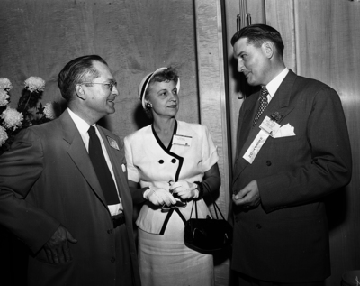 The new Fort Worth National Bank building opened its doors Monday to bankers from all parts of the country taking a busman's Labor Day Holiday. left to right, Howard Hambleton of Waco; Mrs. Hambleton and Estil Vance.
