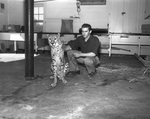 A new arrival from Africa, by way of New York and Colorado, is the poised cheetah shown in the image with F. Kirk Johnson Jr., who brought the animal to Fort Worth. The feline is a gift to the Forest Park Zoo from F. Kirk Johnson Sr., president of the Fort Worth Zoological Society.