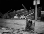 Damage done by flash storm in Lake Worth area. Carl Elston, left, and Constable Paul Meador survey the wreckage of the Lake Worth Skating Rink. Elston estimated the damage at more than $12000.