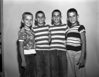 Dennis Kholer and Jimmy, Allen, and Gary Baumgardner, left to right, recently earned $6.10 for the Star-Telegram Milk and Ice Fund by selling earscrews their mothers had made.