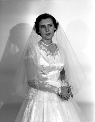 Mrs. David Charles Spangler, bride, is shown wearing her wedding dress.