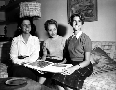 Lloyd Mckee, left, Courtney Schenecker, center, and Glenn Shannon will attend school in the East. The three women are seated on a couch.