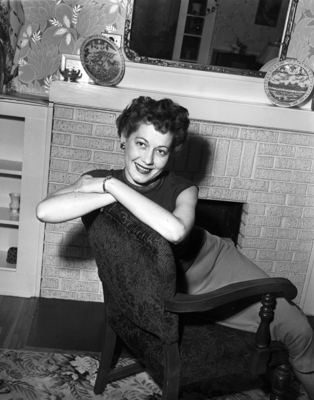 Mrs. R. E. Vickers Jr. arrived in Anchorage, Alaska, after a one day flight from Texas to meet her husband, Lieutenant Vickers, Air Force pilot. Published in Fort Worth Star-Telegram evening edition March 28, 1950.