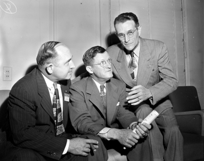 Among leaders at the Texas Joint Railway Labor Legislative Board 26th biennial meeting here are, left to right, Robert H. Wood, Marshall, state representative of the Brotherhood of Railway Clerks and a former legislator; H. H. Clarkston, Brotherhood of Railway Trainman; and E. P. Lawrence, San Antonio, vice chairman of the same board.