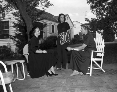 In Style Show - Previewing the style show which will open their club season September 24 are these members of Oakhurst Garden Club. Left to right, Mrs. W. V. Baxter, Mrs. Harry G. Mills and Mrs. Theo F. Cromer. Mrs. Baxter and Mrs. Mills will be models and Mrs. Cromer commentator for the show.