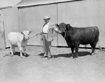 Gracey poses Retnuh Robin's Stylist which was judged junior champion bull at the Panhandle-plains Dairy Show at Plainview. Published in Fort Worth Star-Telegram morning edition May 7, 1950.