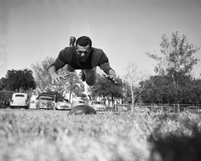 Freddie Linn, 207-pound senior letterman, will be starting his 10th game this year for Paschal at center when the Panthers meet North Side at Farrington Field in a crucial 4A-3 conference tilt. Published in Fort Worth Star-Telegram evening edition October 26, 1952.